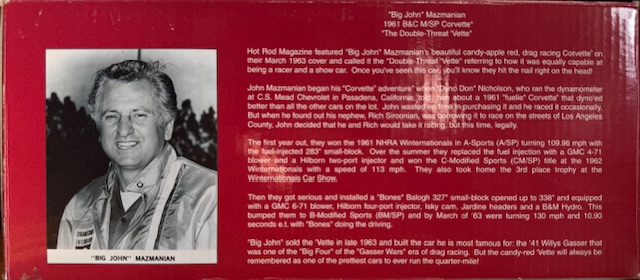 1961 CHEVROLET CORVETTE “BIG JOHN” MAZMANIAN’S CANDY APPLE RED DRAG RACING