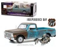 Highway 61 1:18 Independence Day 1971 Chevrolet C10 (Weathered Blue) and Alien Figure