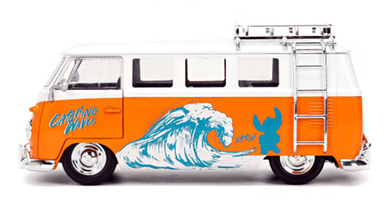 Catching Waves with Stitch – 1961 Volkswagen Bus in Orange and White with Stitch Figure
