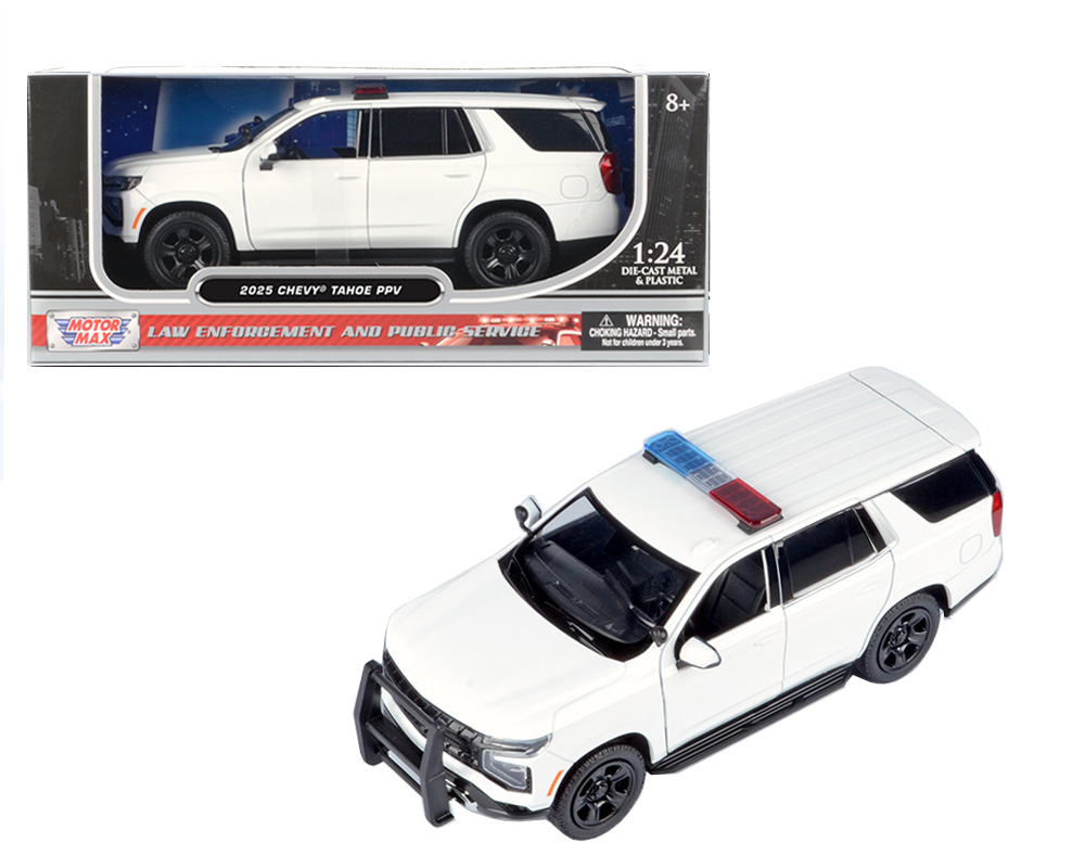 Motor Max 1:24 2025 Chevrolet Tahoe Police Pursuit Vehicle – Plain White – Law Enforcement and Public Service