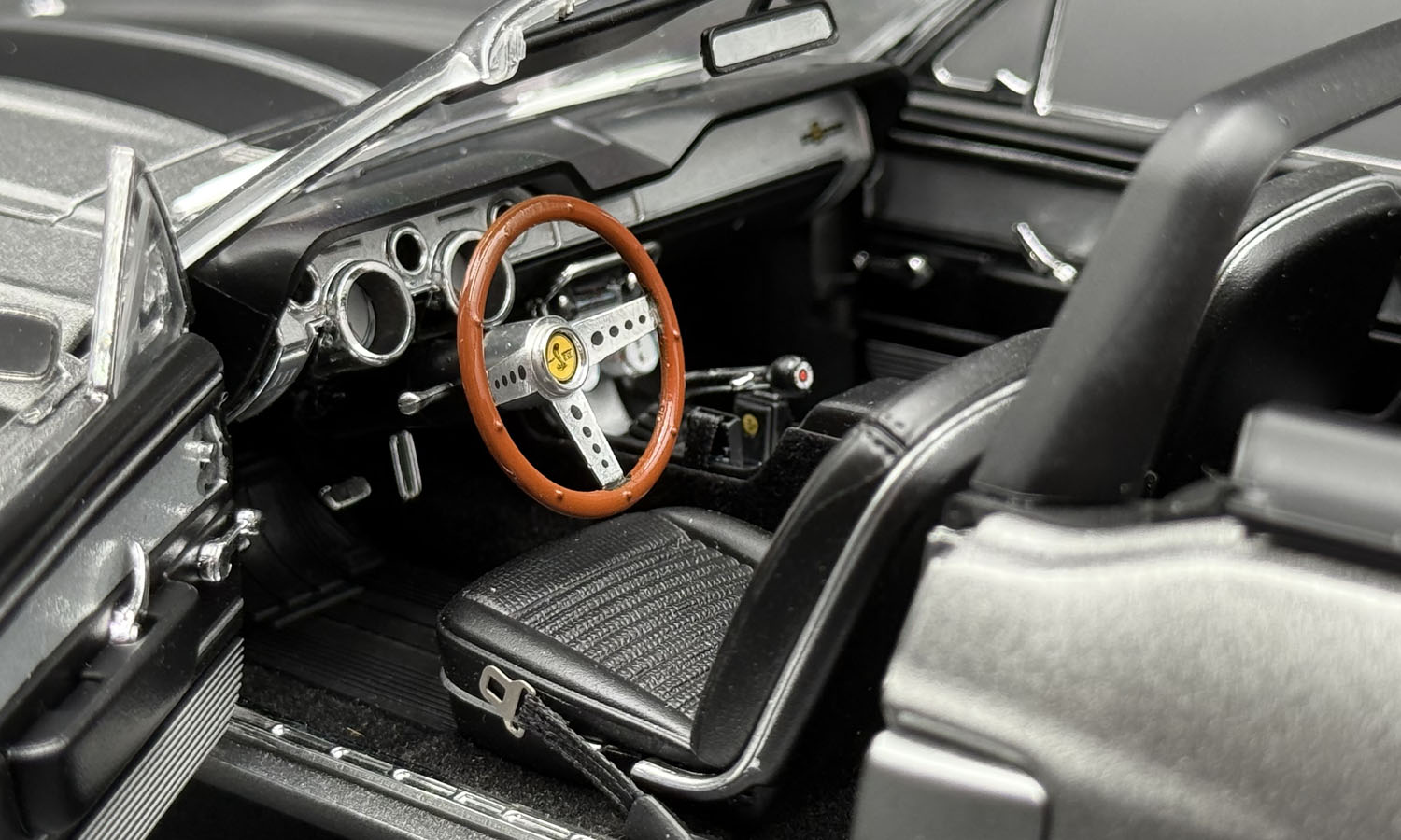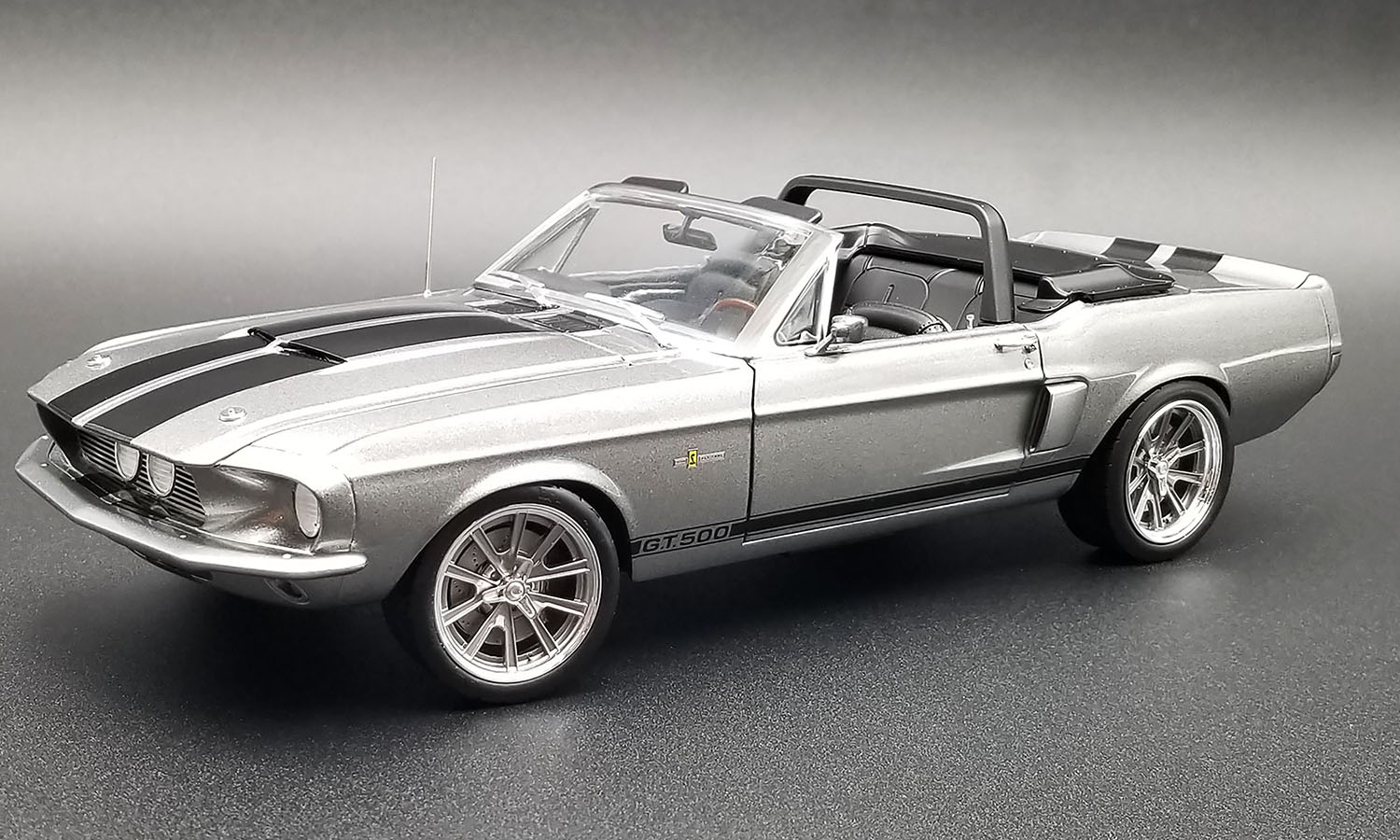 FEATURES: OPENING HOOD, DOORS AND TRUNK, REMOVALBE TOP WITH BOOT, PLUMBED AND WIRED 428 ENGINE, FULLY DETAILED INTERIOR, POSEABLE STEERING, FOLDING FRONT SEATS, CLOTH SEATBELTS, REMOVABLE TOP