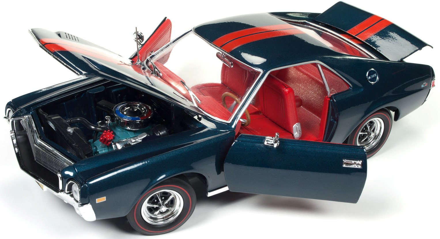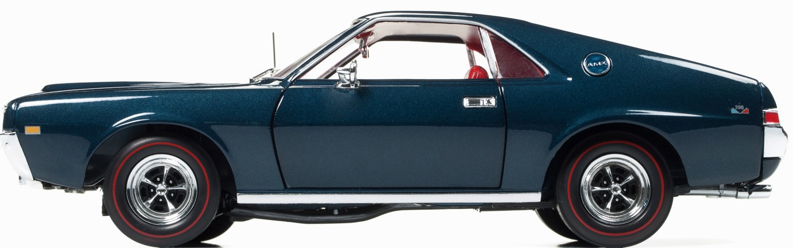 1968 AMC AMX INCLUDES JOHNNY LIGHTNING 1:64 SCALE DIECAST – BLUE WITH RED INTERIOR