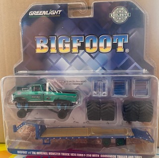 Bigfoot #1 The Original Monster Truck – 1974 Ford F-250 on Gooseneck Trailer with Regular and Replacement 66″ Tires