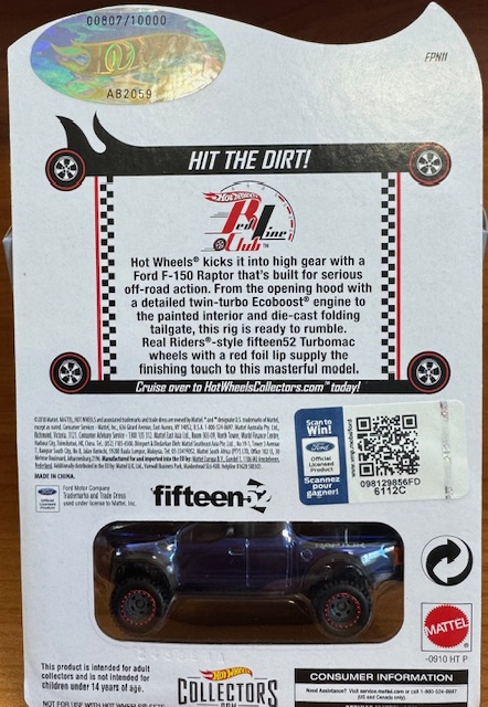 2017 FORD F-150 RAPTOR PICK UP TRUCK – RED LINE CLUB – #00807/10000