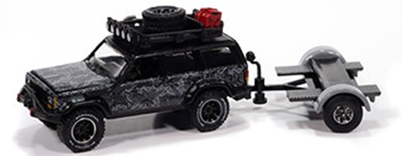 Jeep Cherokee XJ with Tow Dolly in Black and Gray