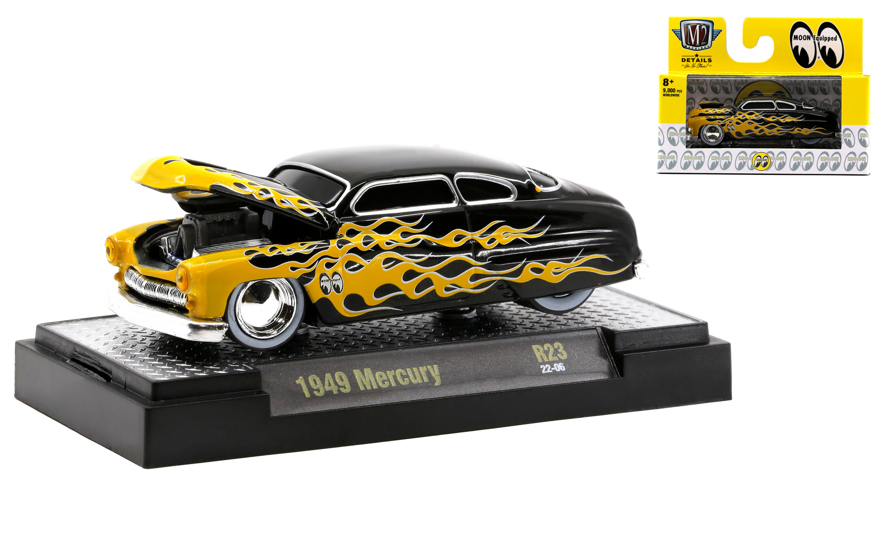 1949 MERCURY - GROUND POUNDERS BY M2 - MOON EYES - BLACK WITH YELLOW FLAMES quantity