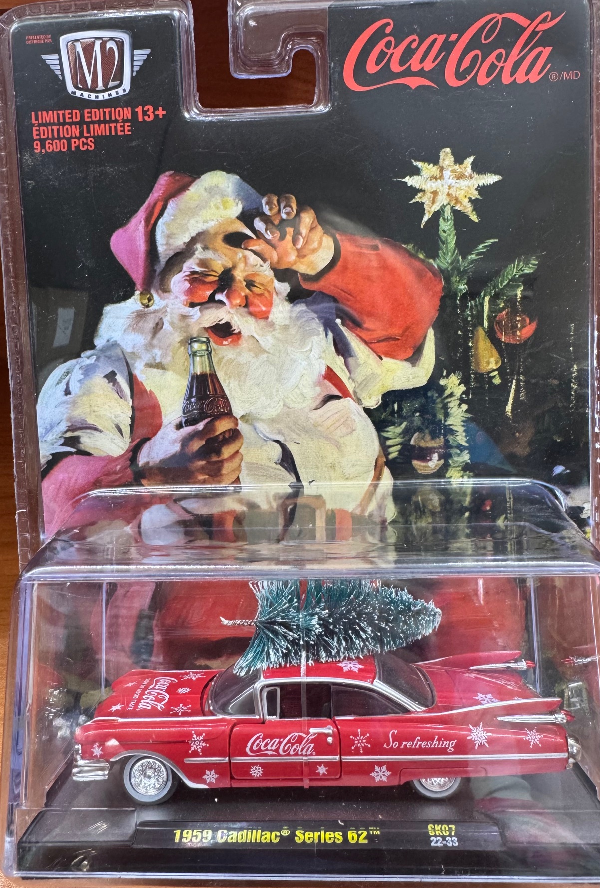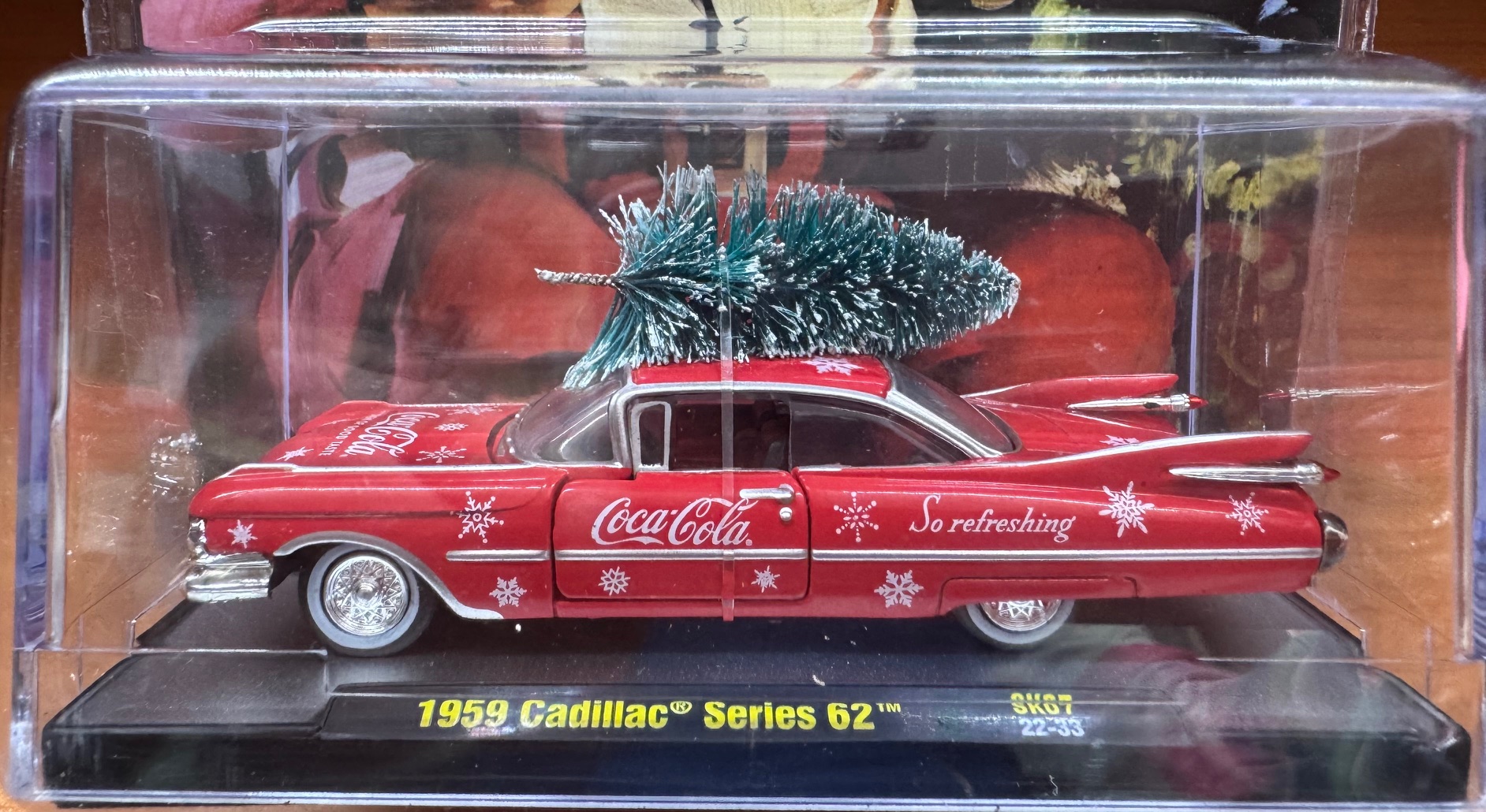 1959 CADILLAC SERIES 62 – COCA-COLA – W/CHRISTMAS TREE AND IN DISPLAY CASE