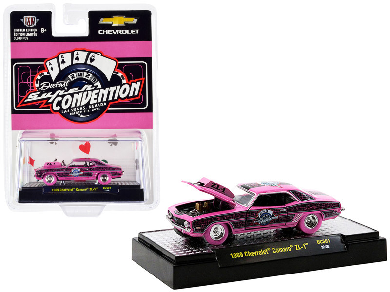 1969 Chevrolet Camaro ZL-1 Pink with Graphics "Diecast Super Convention" (2023) Exclusive by M2 Machines quantity