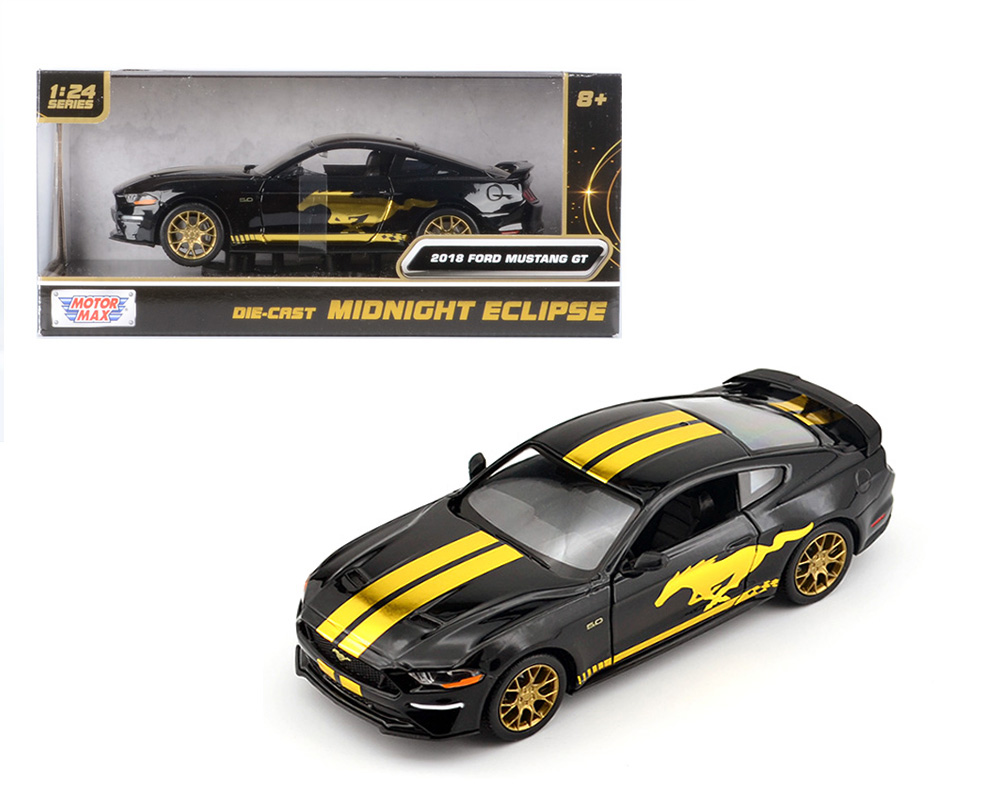 Motormax 1:24 2018 Ford Mustang GT – Matte Black with Gold – Midnight Eclipse