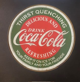 COCA COLA- THIRST QUENCHING DELICIOUS & REFRESHING- ROUND TIN METAL SIGN- 12INCHES quantity